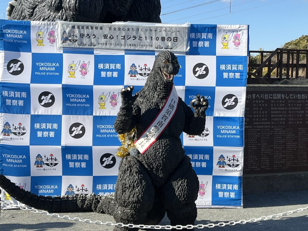 2026/1/10の110番の日にゴジラ(Godzilla)が横須賀南警察署の一日署長に委嘱されました。