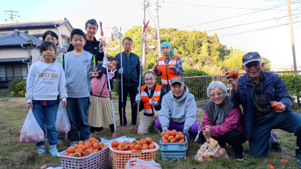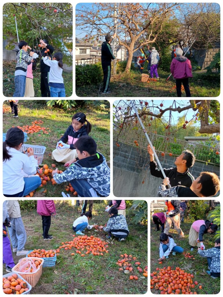 収穫しないとカラスに狙われてしまうので、みんなでどんどん柿をとりました。